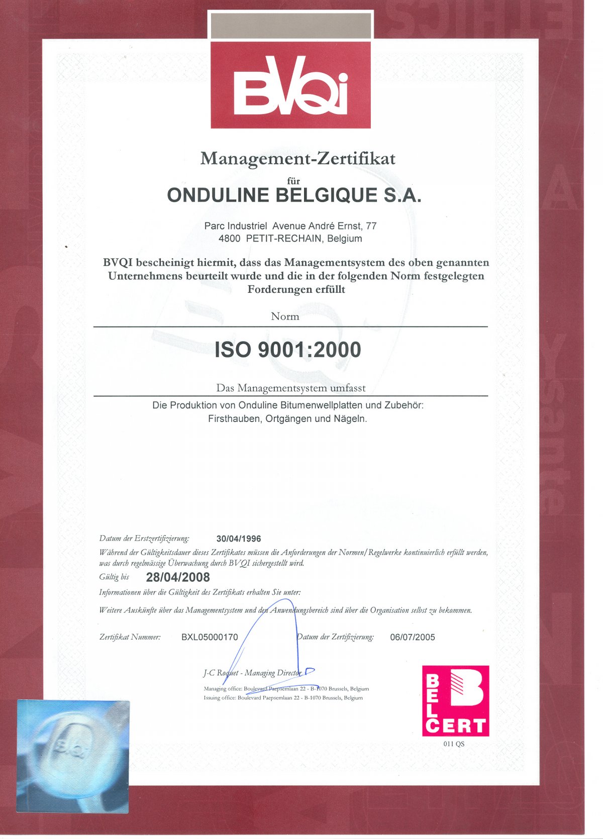 Here you can view and download our certificates
